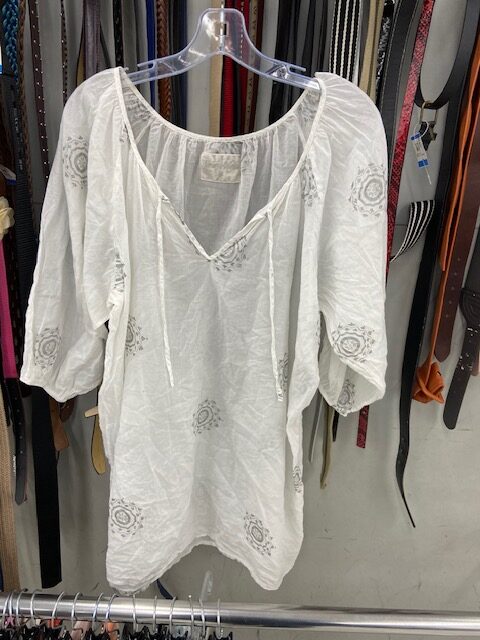 Quite the price range with these two tops and there was really no rhyme or reason with the pricing at the Savers we went to. I have a couple Universal Threads t-shirts that hold up pretty well, so I figured I’d grab this one for less than $3. As for the flowy fern top, I really like the cap sleeves and the pattern. You can see it paired with a skirt here.