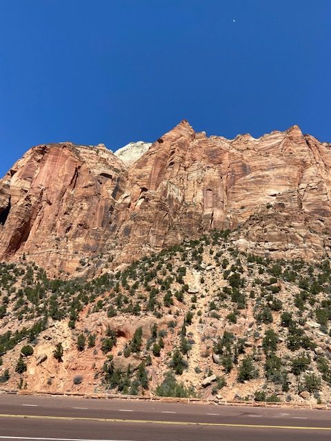 Next stop was Zion National Park — we used our America the Beautiful annual pass here too. We had so much fun riding e-bikes in Austin (you can read about it here), that we decided it would be a great way to enjoy the sights of Zion. However, when we arrived by driving through the mountains, Travis said that even if he didn’t get out of the car the trip would have been worth it. THAT is how mind-blowing the sights are here!