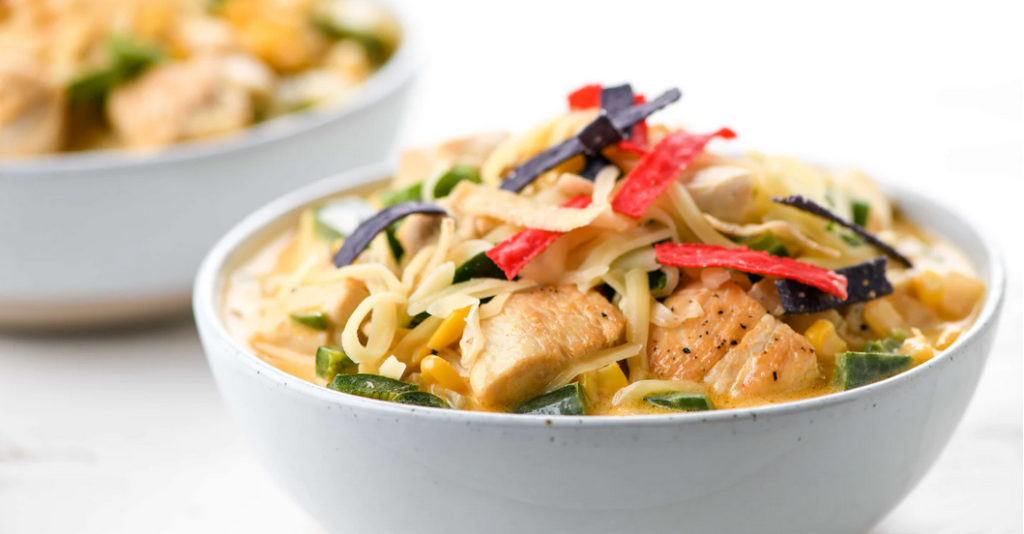 Anyways, I was thinking that maybe some of you were getting bored with your dinners too. So, I thought I’d share one of our favorite dishes from the past couple weeks: One-Pot Creamy Chicken Chowder. Our subscription is set to serve 2 with each meal (I usually stretch it to three for Jack by adding extra sides). I’d recommend doubling or tripling this recipe for a family or to have some leftovers — that’s what we will be doing next time I make it!