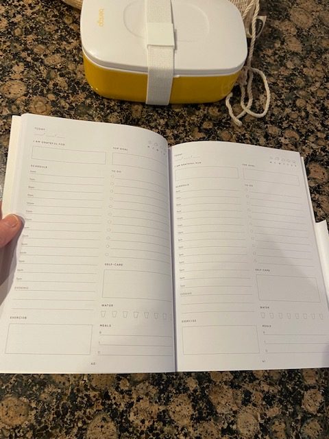 I actually purchased a similar planner earlier this year and after a couple weeks, it got shoved to the side of my desk never to be looked at again. The planner is supposed to help you with self-care and has sections for setting goals, monthly intentions and daily schedule and mood tracking. I think if I weren’t living in the middle of a pandemic quarantine, I’d be a little more excited about it… but honestly I’m just trying to get through each day of work, kid school work, momming and wife-ing.