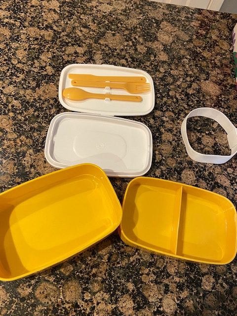 As for the container, Jack likes segmented boxes for his lunch and snacks. Since we’ve been home for the last few weeks, the sectioned portion has become a nice snack box for him. The plasticware is pretty much useless though.