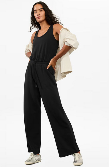I also found the Coaster Luxe jumpsuit and I was intrigued. It’s a tank top, wide legged sweatsuit version of my favorite joggers! It was on sale and I found an extra % off promo code online, so I went ahead and added it to my cart. I’m typically a size large in Athleta bottoms, so I ordered a large.