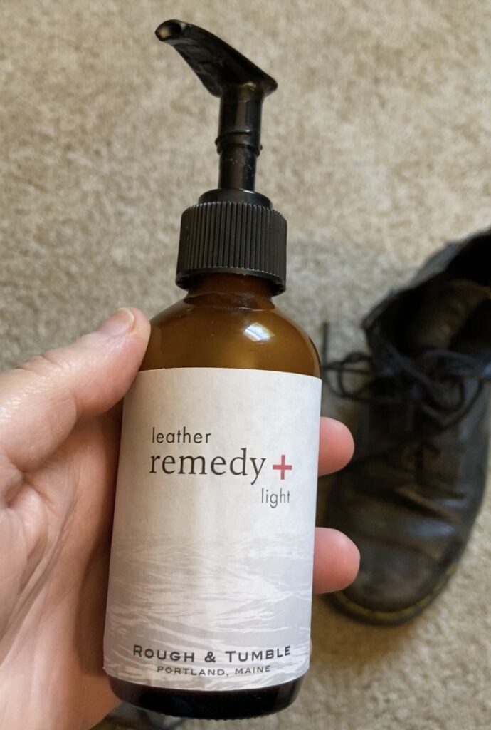 I used the Leather Remedy Light because that’s what I had on hand for my purses. However, over the years I’ve also used conditioning oil like Otter Wax and Kiwi black shoe polish when the color needed a little extra help.