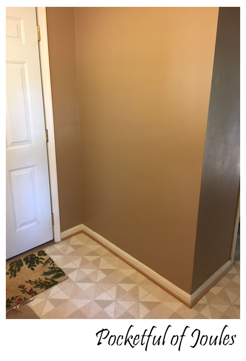 This stuff does NOT fit in the pantry. So, instead I would just kind of pile it up on a table sitting in my laundry area. We don’t really have a laundry “room” because there is no door. Instead you can actually see the laundry area from the corner of the den. There is also a door to our backyard there, as well as a door to my garage.