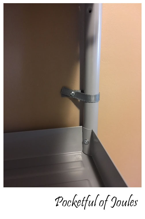 After putting the top shelving unit together, I grabbed some drywall anchors and secured the entire unit to the wall. This is super important to do if you have a kid in the house, because you don’t want a heavy unit to fall on them!