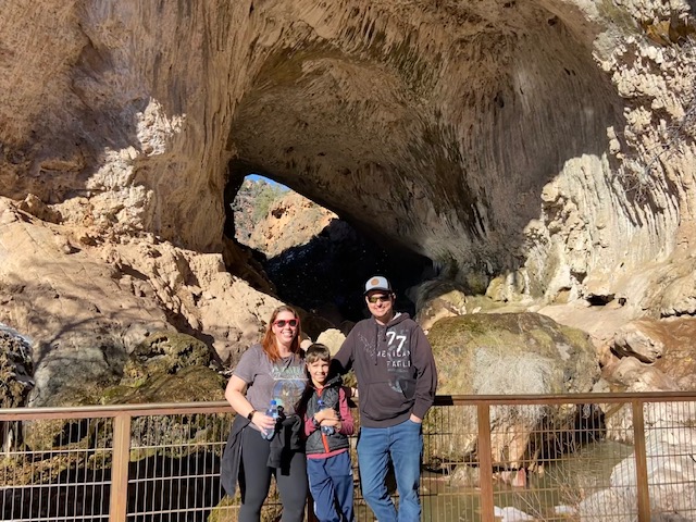 We stopped in Payson and visited the visitor center, where the nice lady gave us all sorts of information and a great lunch recommendation. We had lunch at the Delicious Café in Payson and it was indeed quite delicious! From there, we drove to Pine and stopped off at the Tonto Natural Bridge State Park ($7 per adult and $4 per kid). The Anna Mae and Pine Creek trails were closed due to ice, but we were able to hike the Gowan trail down below the bridge and also to the viewpoint above it.