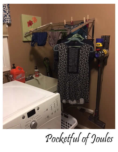 There was one issue though. After washing my ‘no dryer’ items, I’d lay them all on top the washer/dryer to let them air dry. Or, I’d stick them on hangers and hang them all over my bedroom – on my closet door, on my dresser knobs, on Ollie’s tail if he was moving too slowly…