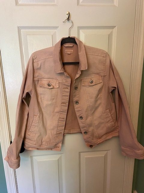 This jacket was hanging on the end of an aisle and it just called to me. It’s hard to pick up the exact washed out pink color in photos, but it’s really gorgeous in person. Kinda like a muted clay color… Anyways, it still had the original Target tags on it for $29.99, so it was kind of a steal even if I didn’t thrift it for $12!