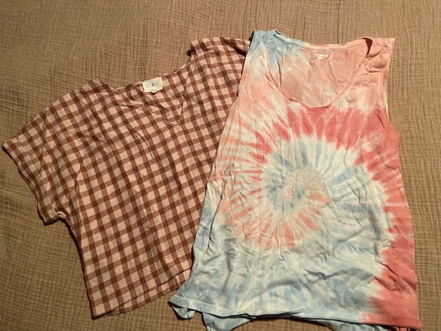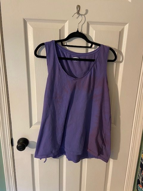 Here’s the tank top. Kind of a bummer. I was hoping you’d still see a little of the tie-dye design, but meh.