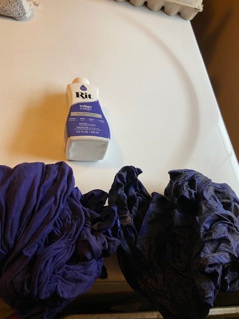 To be honest, at first, I was thinking a darker green dye – like maybe a grey-moss. But with the background being light pink, color theory says that the green dye would have turned it mud brown. I picked Indigo, because if the pink hung around when I dyed it… it would go towards purple. Which is totally fine.