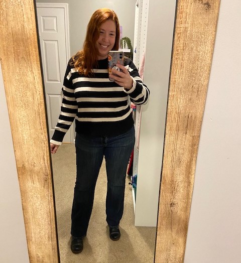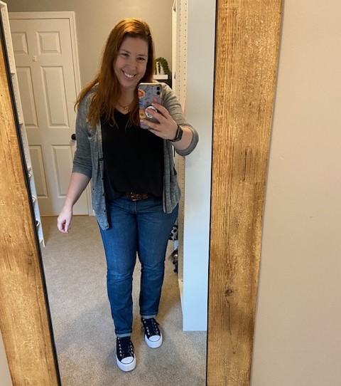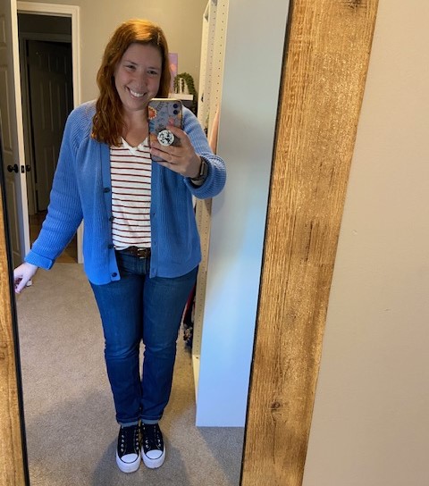 This is going to be shocking… but I actually bought this cardigan RETAIL at a Loft Outlet on the way home from Ocean City last summer. I really liked the 100% cotton, chunky stitches and cute cropped length. I tried to convince myself that I would grow to love the color or that it was exactly what my closet was missing. But it just didn’t work for me. The light brown felt like boring sweater oatmeal and it just didn’t look good with my coloring or play well with other items in my closet.
