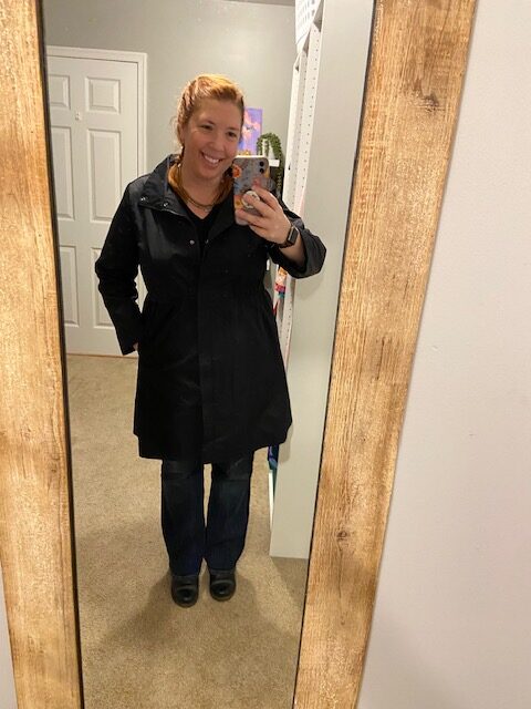 Did I need another coat? Um… no. Can I resist a designer coat that fits me perfectly and is fantastically lightweight but warm? Also, no. I love this classic black coat with an adjustable drawstring in the waist and nice, deep, fleece-lined pockets. I decided it was well worth the $65 to me and was pleasantly surprised to see that the original retail price was $368.