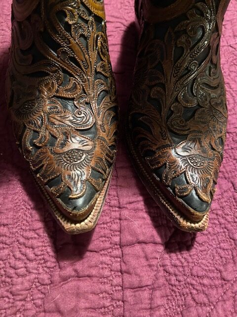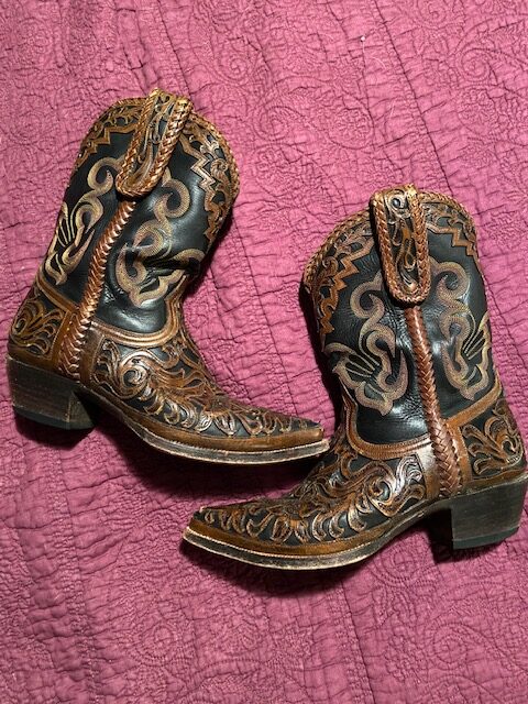 Imagine my shock when I did my research later that night and found that the Heritage Boot Co has just one store in Austin, TX and all their boots are completely handmade. NO MACHINE was involved to do this intricate tooling, it was all hand tooled! I found the men’s version of my boots on their website and they sell for… $1,695. HOLY GUACAMOLE! So yeah, I’m not sure which rich lady wore these a bit and then dropped them at the consignment store, but I’d really love to be her friend and take her hand-me-downs!