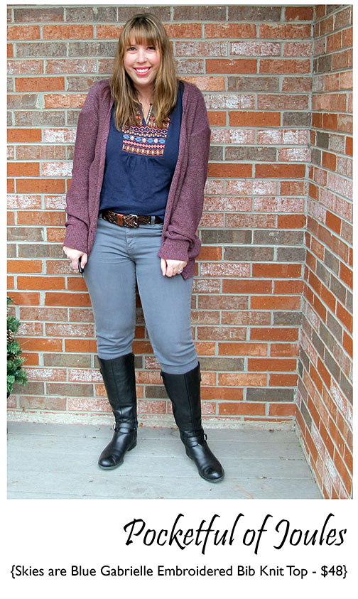 Previous Image Next Image Stitch Fix Review – Skies are Blue Gabrielle Embroidered Bib Knit Top – Pocketful of Joules