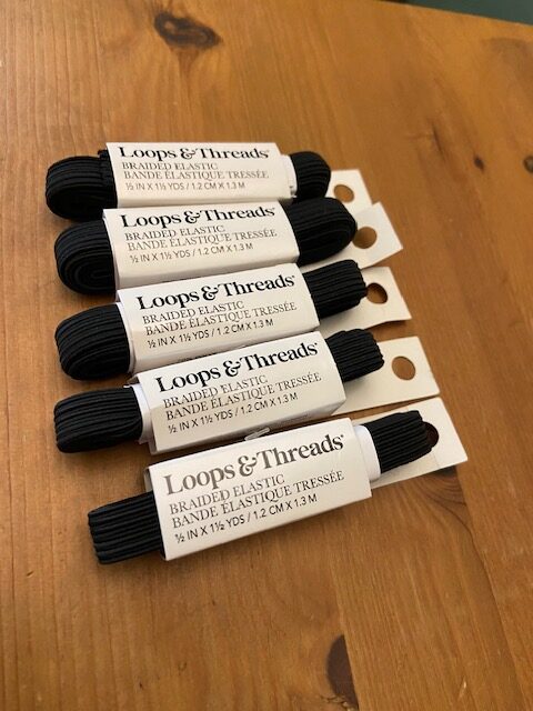 - Braided elastic. I got Loops & Threads braided elastic in ½ inch width from my local Michaels store (they were $2.49 each) I bought 6 because I had 6 pairs of pants to do and I had some left over from each for future projects. However, this roll from Amazon is a much better deal for price. (If you’d prefer to go the elastic + buttonhole route, this roll and pack of buttons would be great).