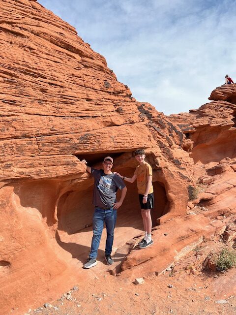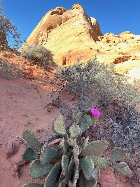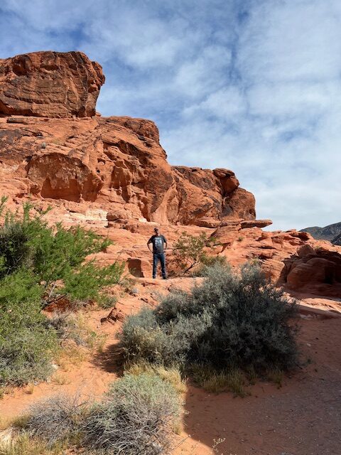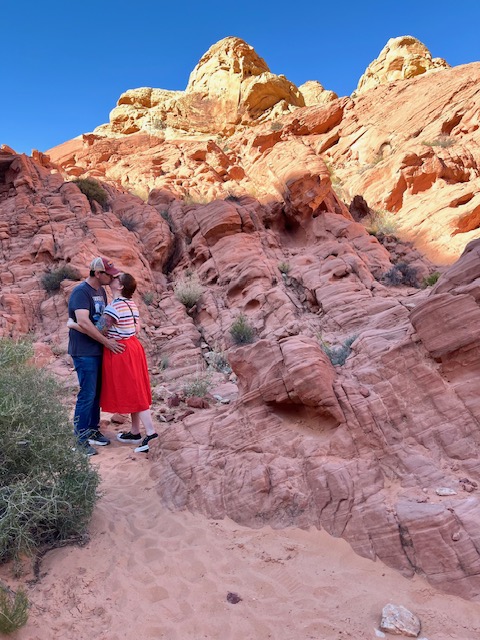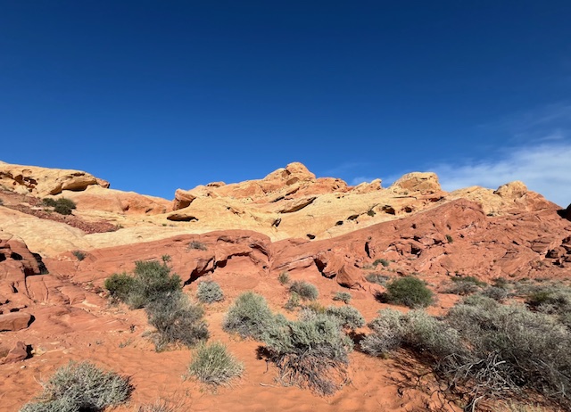 Our plan was to visit Valley of Fire State Park ($15 per car) for our third time. It is one of my absolute favorite places in the world, so it was a ‘must do’ on my list for the week. We stopped for sandwiches on our way out of town, drove to Valley of Fire, and enjoyed a picnic while overlooking the The Beehives, a grouping of large sandstone formations resembling large beehives.
