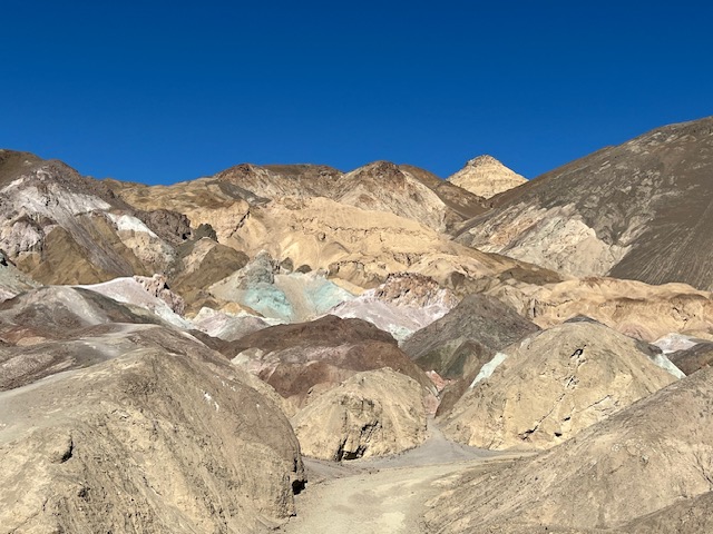 Once we got into Death Valley (we used our America the Beautiful pass), we started at the Visitor Center and then made stops at the Devil’s Golf Course, Badwater Basin, Dantes View, Artist’s Drive and Zabriskie Point.