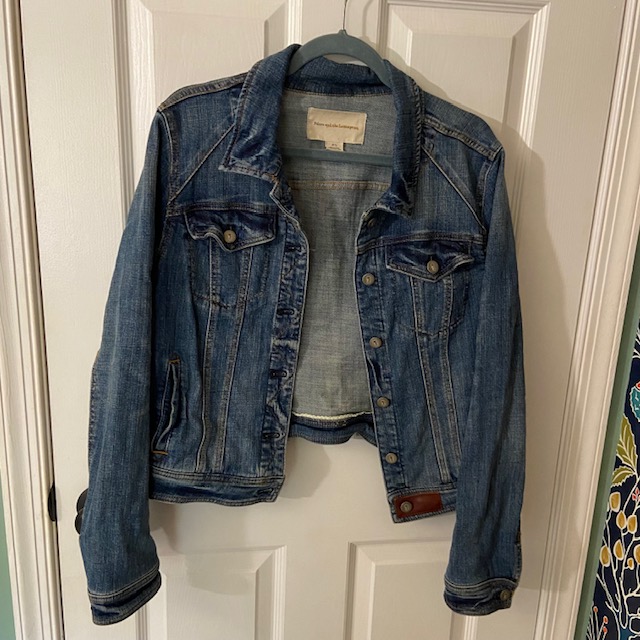 Yes, it’s ANOTHER denim jacket. But I keep making craft projects out of them, so when I see a well-fitting jacket in a great denim wash I feel the need to add it to my collection. I picked this one up at a consignment store and the brand is from Anthropologie. I hopped over to their website and an almost identical Pilcro and the Letterpress denim jacket is currently selling for $148.