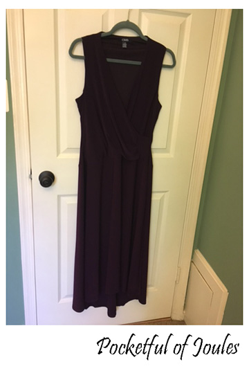 I really like the dark purple Aubergine color of this dress and I picked up because I don’t have many solid dresses in my collection. It is currently sitting on my sewing table because I think I’m going to chop the length to knee-length and add a tie-belt with the extra fabric. While it is very pretty in its current design, hemming it shorter will make it more work appropriate for me. I can see me wearing this to work with a pretty embellished sweater and patterned flats.