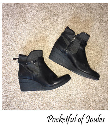 I also aimed the hair dryer at it a few times throughout the day. Last, I stuck a shoe stretcher in there and left it over the weekend. The stretched just enough and are now perfect. These look so cute with leggings and a comfy top for a casual day.