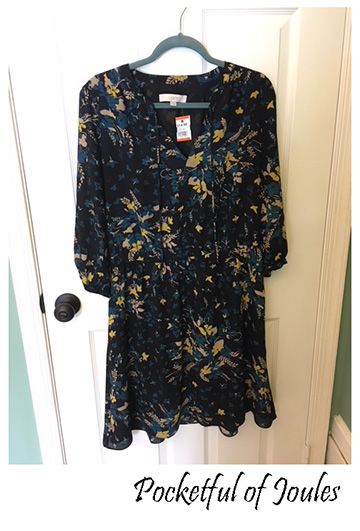 I love the colors in the pattern of this pretty Loft dress. It’s got elbow-length sleeves and a knee-length skirt, which is exactly what I like in a dress for work. I threw it in the wash immediately (washed in cold and then hung dry) so I could wear it to my sister’s bridal shower over the weekend (see it here).