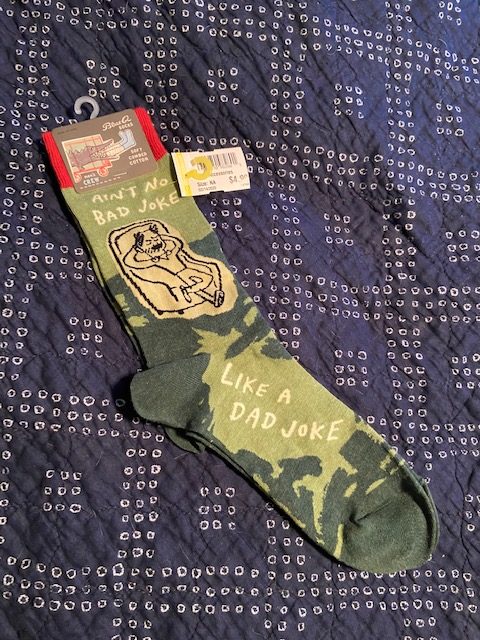 I love Blue Q brand and these exact socks are still selling on their website for $12.99. They were still in the original packaging at the thrift store and I knew my husband would love them… so I splurged.