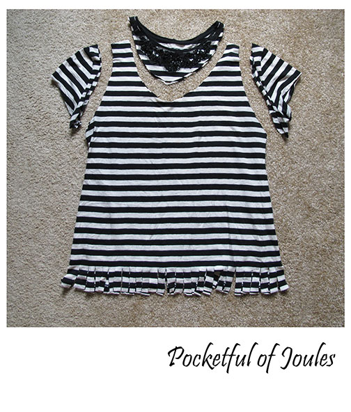 Following the steps on the pin, I sliced off the neckline and sleeves.