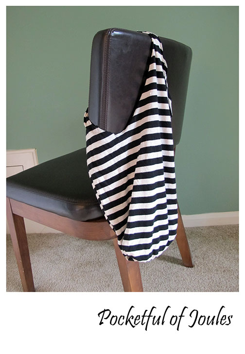 I could see this as being a really good ‘keep busy’ summer project for a kid or teenager. It really isn’t hard at all, as long as you are careful not to slice a finger open with the scissors. I think this could be a great use for those ‘brand’ t-shirts that we end up getting for free! The best part is that you keep a few in your trunk for groceries and just throw them in the washing machine when they get a little icky!
