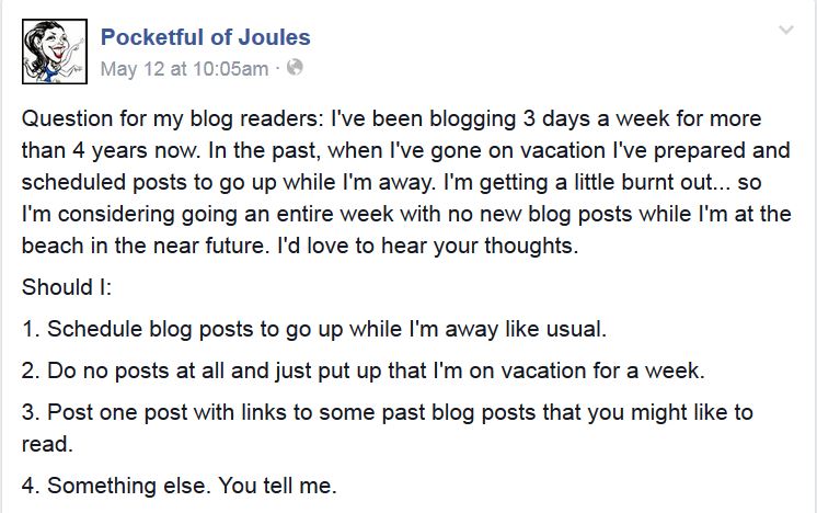 A couple weeks ago, I asked a question over on my Facebook page: