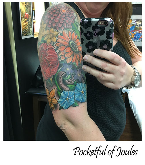 I have been thinking of adding the birth flowers to mine to fill in some gaps. I also wish my tattoos were bigger. Currently my arm piece is only on the inside of the arm because I was chicken, but I end up covering my arms to my elbows at work anyway!