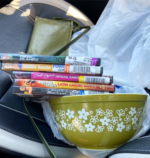 Since I won’t be going back to the gym for a while, I decided to buy a few workout DVD’s to add to my rotation. On this stop I found Billy Blanks Tae-Bo, Denise Austin Power Zone, and Billy’s Bootcamp Cardio Inferno. I also found Latin Cardio Dance and the Dirty Dancing Official Dance Routine DVD…so that should be fun and hilarious!