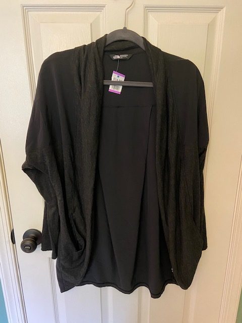 I wish this one photographed better, but it’s a cocoon sweater wrap, so it looks kind of odd on the hanger. I did a ton of googling and finally tracked this down it was from the Spring 2018 North Face release and retailed for $75. I love it so much and it will look so cute with a t-shirt and jeans once the weather cools down. The only problem is that I overlooked that it has wool in the fabric of the sleeves, so I’m not sure if I’ll be able to wear it!