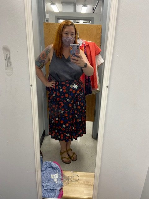 This month, I’ve been feeling super burned out so I decided to take a Friday off as a mental health day. It was very much needed and of course, two of my stops on my free day were to a couple of my favorite thrift stores! I did some dressing room snaps while shopping too, so you can see how each item fits.