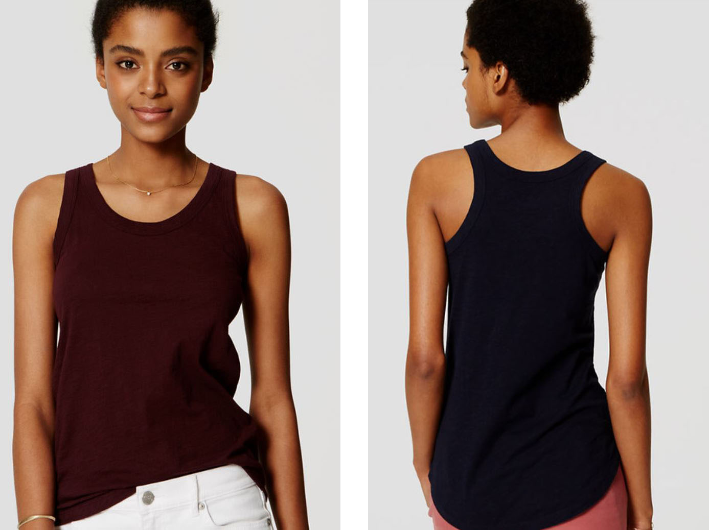 This was the item I actually clicked over to Loft for in the first place. I had just bought a new skirt and thought a racerback tank would be the perfect complement to it for when I dance my face off at a BlogHer dance party. Luckily, in person this is exactly what it looks like online.