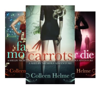 The series starts with Carrots where our main character, Shelby, gets shot in the head (while at the grocery store to pick up carrots) and suddenly can hear people’s thoughts. There’s a mob story line, a sexy hit man, an also sexy husband, kids to wrangle and mysteries to solve. You can find the whole series in order here.