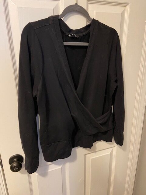 This was another item from that super sale rack. However, this one has certainly seen some wear… so I would not have purchased it if it were not as cheap as it was. With that being said, it’s super soft and warm with thumb-holes and for less than 8 bucks, it will certainly get lots more wear in my closet. This is another great telework top and also a comfy top to throw on for outdoor walks. Eventually, when it gets even more worn-looking, it will be demoted to bedtime wear and I’ll use it as a pj topper (until it gets thrown across the room when I overheat halfway through the night).
