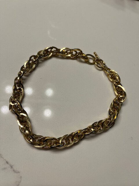 Once again, I was sucked in by a ‘surprisingly heavy for it’s size’ chain necklace at a secondhand store. This one doesn’t have any kind of branding on it, so who knows where it came from. With that being said, I think I’m going to turn this into a chunky bracelet for stacking.