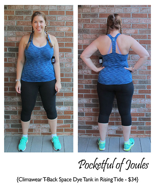 Option 2: Buy the blue space dye tank top for $16 ($20 from styling fee). It seems pretty flattering and maybe I can get over my tummy issues and wear it on my runs. I’ll have $3 left over towards the September box.