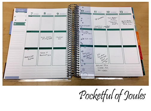 I chose the vertical layout, which gives you three blocks per day. I used the top block for home stuff, the middle block for my work schedule, and the bottom block to keep track of everything Pocketful of Joules: