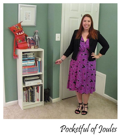 You all know I love a good wrap dress, and this pretty purple-ish number is no exception. I feel like it’s a little clashy with my current hair color, so I added my favorite black blazer to break it up a bit. The dress is from Leota and it’s the Mae dress in Petunia. I bought it on sale a year or so ago, but it looks like they have the same pattern in a sweetheart neckline in plus sizes (you can find it here).