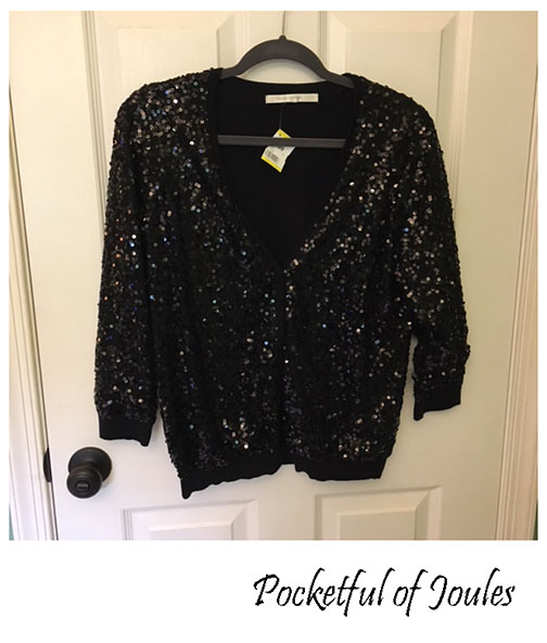 I’ve been low-key looking for some sort of sequined or beaded cardigan or jacket. I’ve seen them styled with jeans and a t-shirt and I love the way it looks. However, I can’t really see me rocking this look anytime other than the holidays, so I didn’t want to spend much on trying this trend.