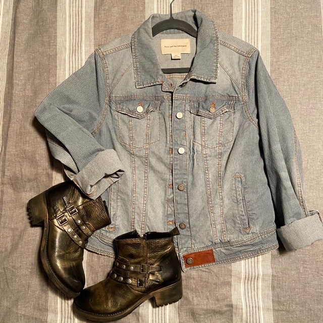 Did I need two more pairs of boots? Nope. But dang do they make me happy! When I found the striped jean jacket, I noticed the green/gold boots in the Poshers closet, so I decided to bundle the items and make an offer for $40… which was accepted. As for the Frye boots, they are just so pretty and I got a great deal on them, so no regrets!