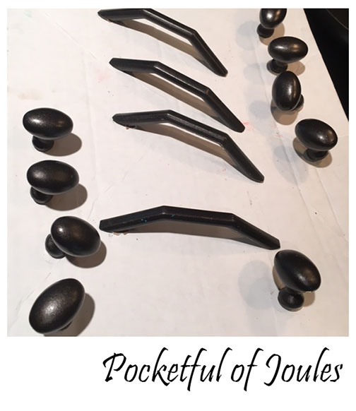 I decided to take an hour over the weekend and redo the whole project. I unscrewed any knob or pull that had a chip in the paint and shoved it through an old cardboard box.