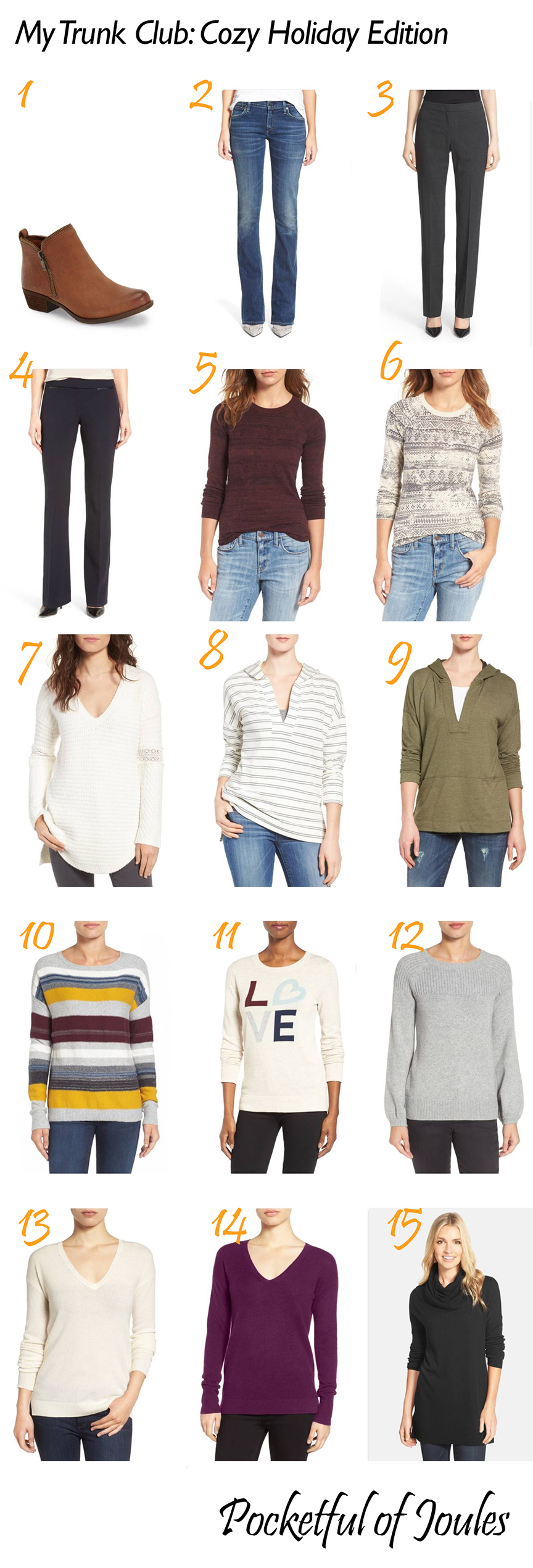 With the holiday season upon us, I was feeling the urge to give myself a little treat. So, I asked my fabulous stylist over at Trunk Club to send me over a holiday Trunk full of cozy sweaters and other goodies.