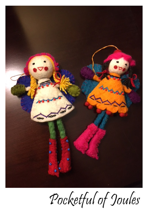 How adorable are these little felt angels? I bought one for my tree and one for a gift. Felt n Wool exports handcrafted felt products from Nepal and they had everything from scarves to slippers to ornaments. I read this on their Facebook page and thought it was really cool: “Our products are made in both a worker and eco-friendly process. Felt is not woven; instead the wool fibers are placed in warm soapy water and rolled under pressure to entangle the fibers. No electricity is used and there is little waste. Most of the workers are women who get their kids off to school, sit together chatting with friends and making our products – earning wages about the same as office workers – and finishing work in time to greet the kids from school.” You can find their page here.