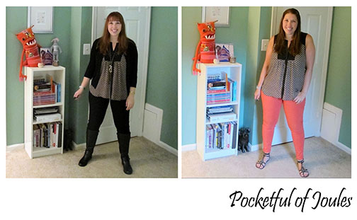 This Daniel Rainn blouse is one of those sleeper hits. The fun pattern mixed with the black crochet top makes for an interesting look and it can be easily paired with pretty much any color bottoms. I’ve worn it most with black skinny jeans, burgundy slim pants, and even these bright coral pants and sandals. This shirt started off my love of the Daniel Rainn brand and I always do a little walk by when I see it at Nordstrom Rack.