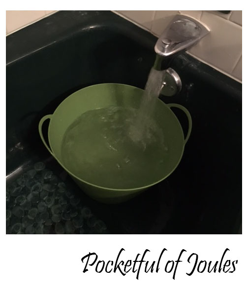 By the way, my ugly green bathtub was the perfect fit for this DIY! I probably could have just filled it up with water and dye, but I grabbed a handy dollar store bin. I filled it with hot water and then dumped in the entire container of dye.