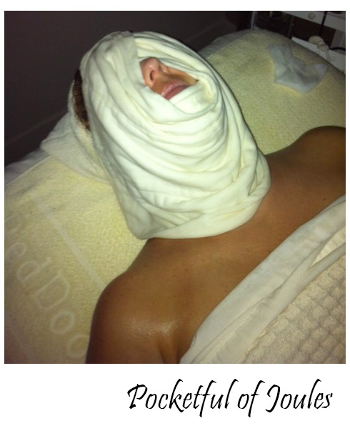 When I arrived I was directed to change into a robe and put my stuff in a locker. I was initially confused because I expected the facial to be all about my face… but it turns out that you also get your arms, hands, upper chest, neck and shoulders massaged.