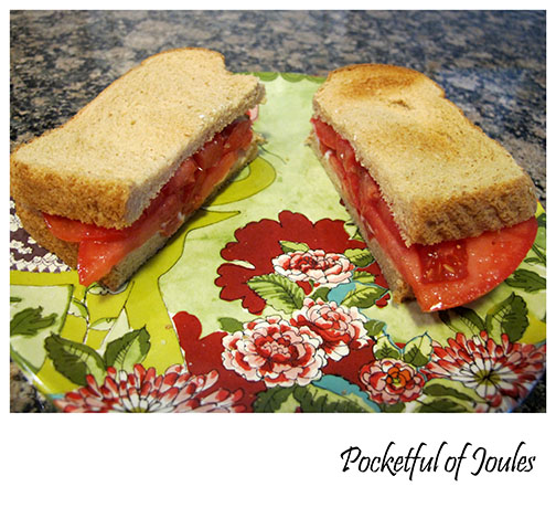 Now, for most people the sandwich would be missing the lunch meat… but for me this was the perfect combination of toasted bread, tomato, a little mayo, salt and pepper.