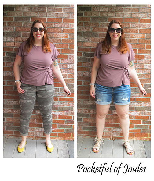 Outfit on the left: paired with my camo skinny pants from my April 2017 Trunk and Marigold Rothy’s.